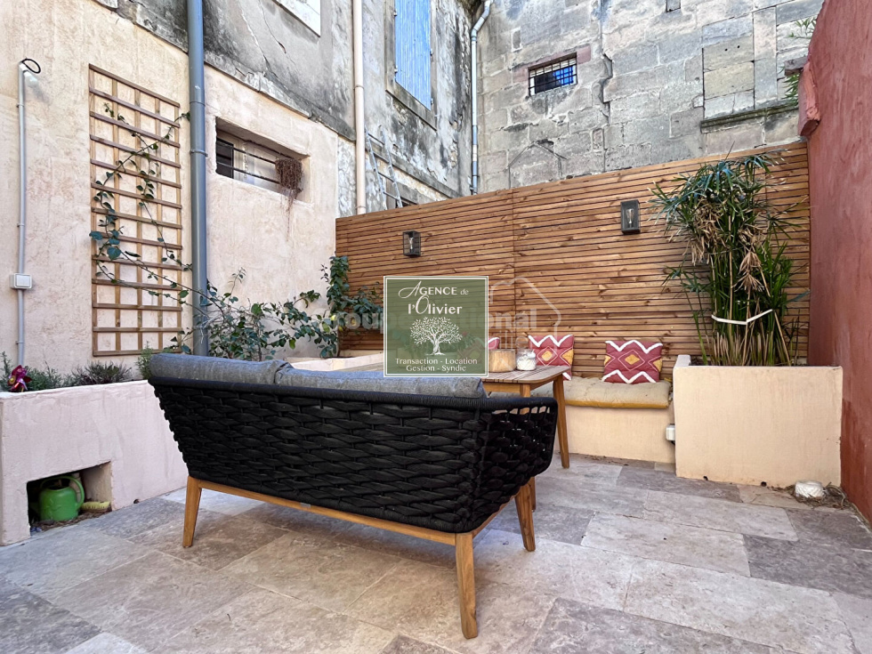 ARLES. VENDU PAR NOS SOINS ! Quartier Hauture. Magnifique maison de ville de 125 m² entièrement rénovée avec goût, matériaux de qualité, respect et mise en valeur des éléments anciens !Au rez de chaussée, très grande pièce de vie traversante de 55 m² avec cuisine équipée ouverte sur la cour de 25 m². Toilettes.Au 1er niveau un dégagement dessert 2 chambres (dont une suite parentale avec sa salle de bains), une salle d'eau avec deuxième toilette et un bureau donnant accès à la troisième chambre située au dernier étage. Chauffage central au gaz de ville, climatisation aux étages.