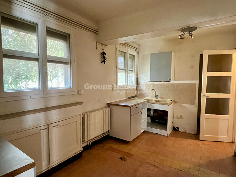 ARLES. SOUS OFFRE ACCEPTEE ! Au coeur du très recherché quartier de Chabourlet, dans une rue particulièrement calme, cette charmante villa de 130 m² vous est proposée à la vente. Édifiée sur deux niveaux, elle se compose d'un hall d'entrée desservant un séjour et une cuisine indépendante, quatre chambres dont deux en rez-de-chaussée, un bureau en deux parties de 20 m² pouvant être indépendant (accès direct à la rue), une salle de bains et des toilettes séparées.Le terrain de 465 m² est entièrement arboré, sans vis-à-vis et offre un environnement paisible. Un garage indépendant complète l'ensemble.La maison bénéficie du confort du double vitrage, de volets roulants électriques, d'une chaudière gaz récente et de la climatisation. Des travaux de rénovation sont à prévoir, laissant place à de nombreuses possibilités d'aménagement.