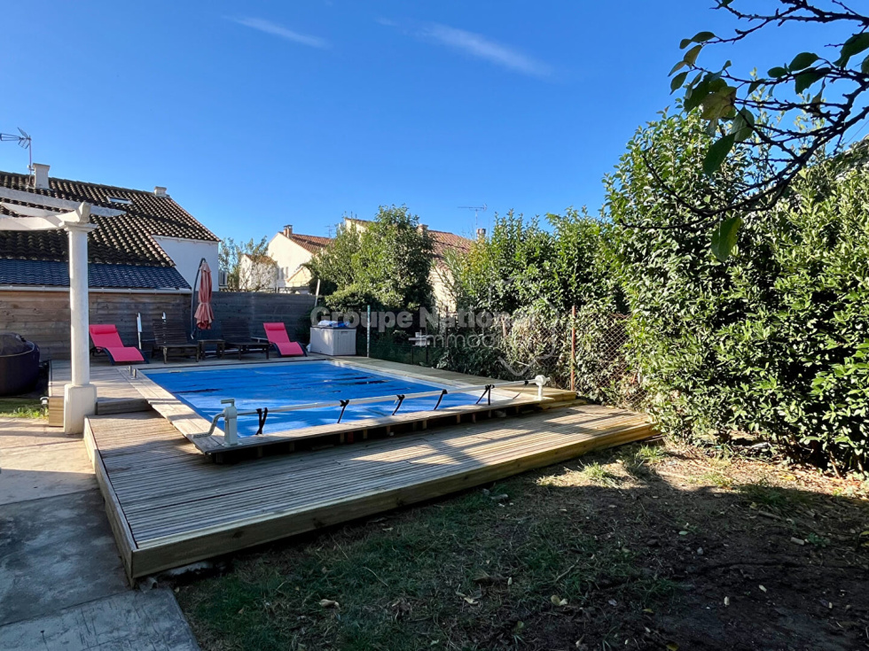 ARLES. Dans une rue calme du quartier de Monplaisir, jolie villa de plain pieds de 70 m² avec garage attenant.Hall d'entrée desservant un salon séjour avec poêle à bois et une cuisine ouverte. Un dégagement donne accès aux deux chambres ainsi qu'à la salle d'eau avec wc.A l'extérieur, un espace jardin, terrasse et piscine permettent de profiter des beaux jours.Très bon état général : double vitrage, volets roulants électriques, climatisation, chauffage central gaz...Centre ville à pieds !
