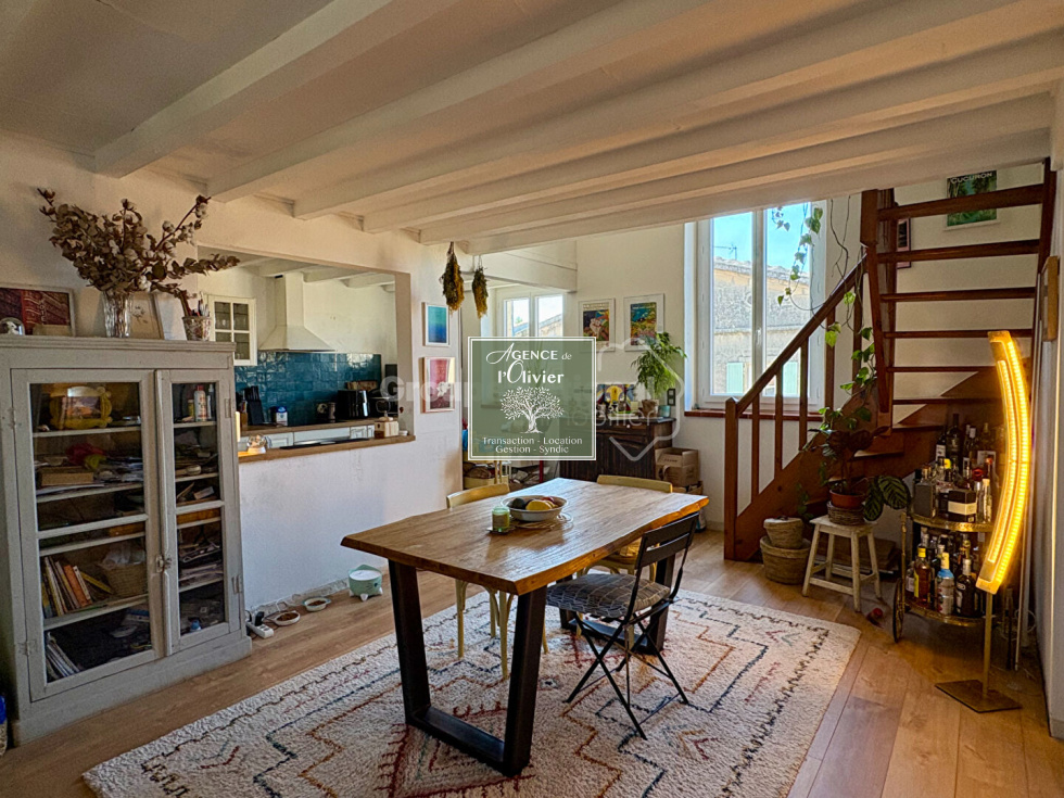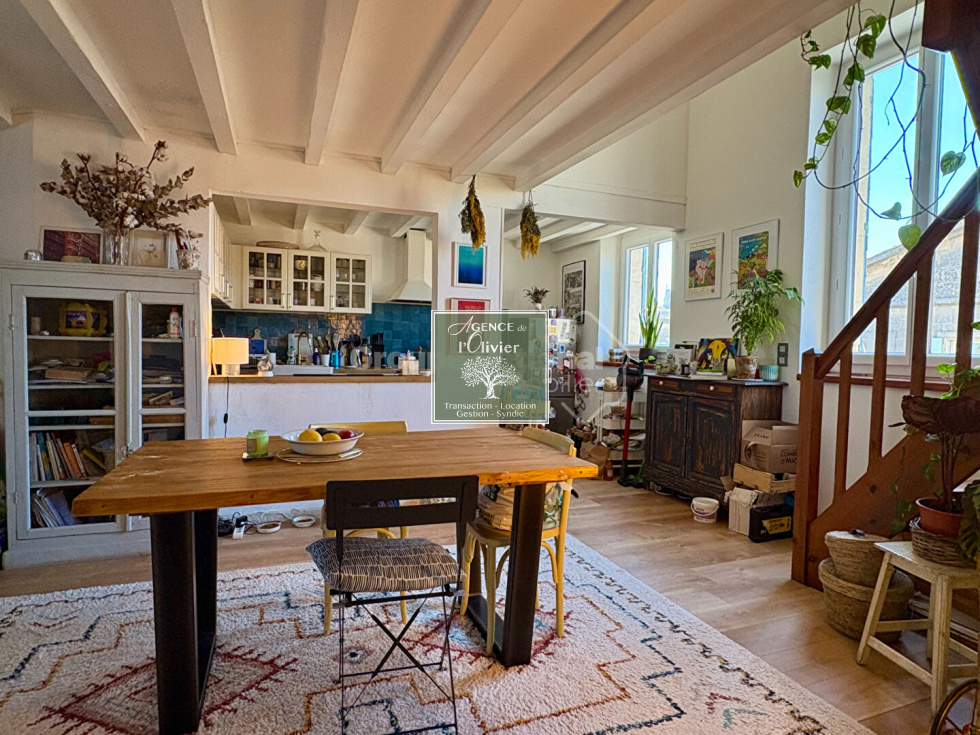 ARLES. SOUS COMPRO%IS DE VENTE ! En bordure du centre historique, venez découvrir ce magnifique et spacieux T4 en duplex de 84 m² situé au 2ème et 3ème étages (derniers) d'une résidence de 4 lots ! Sur le premier niveau grande pièce de vie avec cuisine neuve ouverte et salon (ou 3ème chambre), salle de bains et wc. Au deuxième niveau : dégagement coin bureau, 2 chambres et grand grenier. Appartement rénové en parfait état : double vitrage, climatisation, cuisine neuve...Copropriété de 4 lots - dont 3 lots habitation. (Pas de procédure en cours).Charges annuelles : 1003.00 euros.